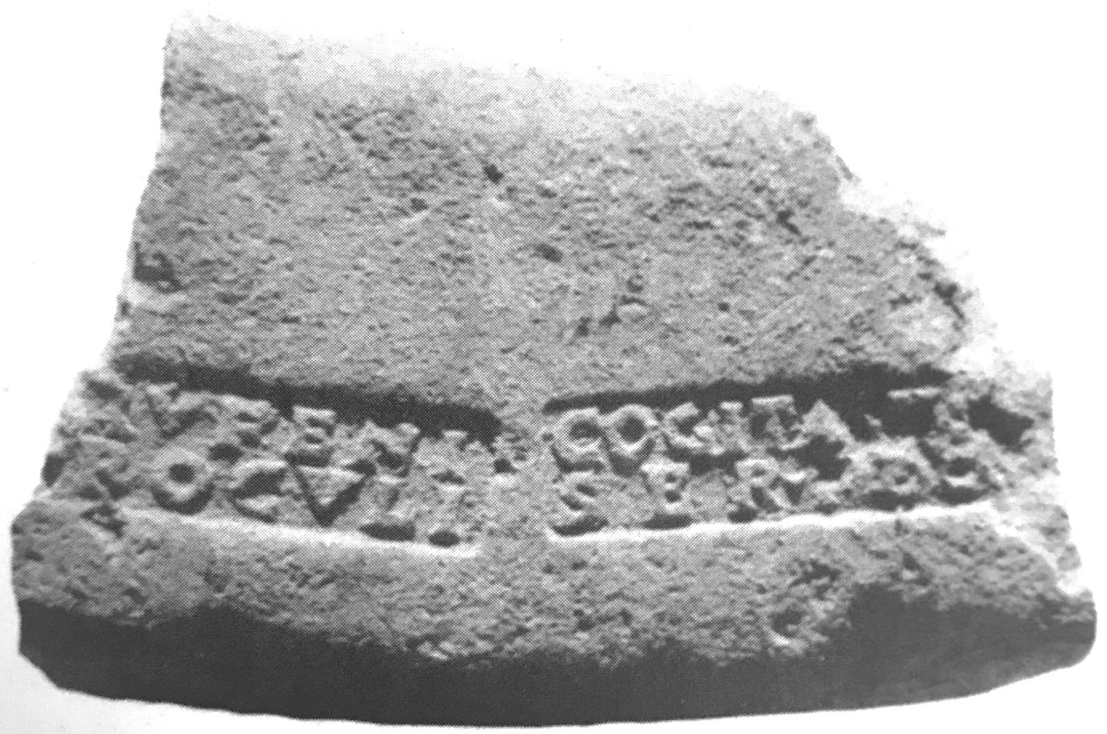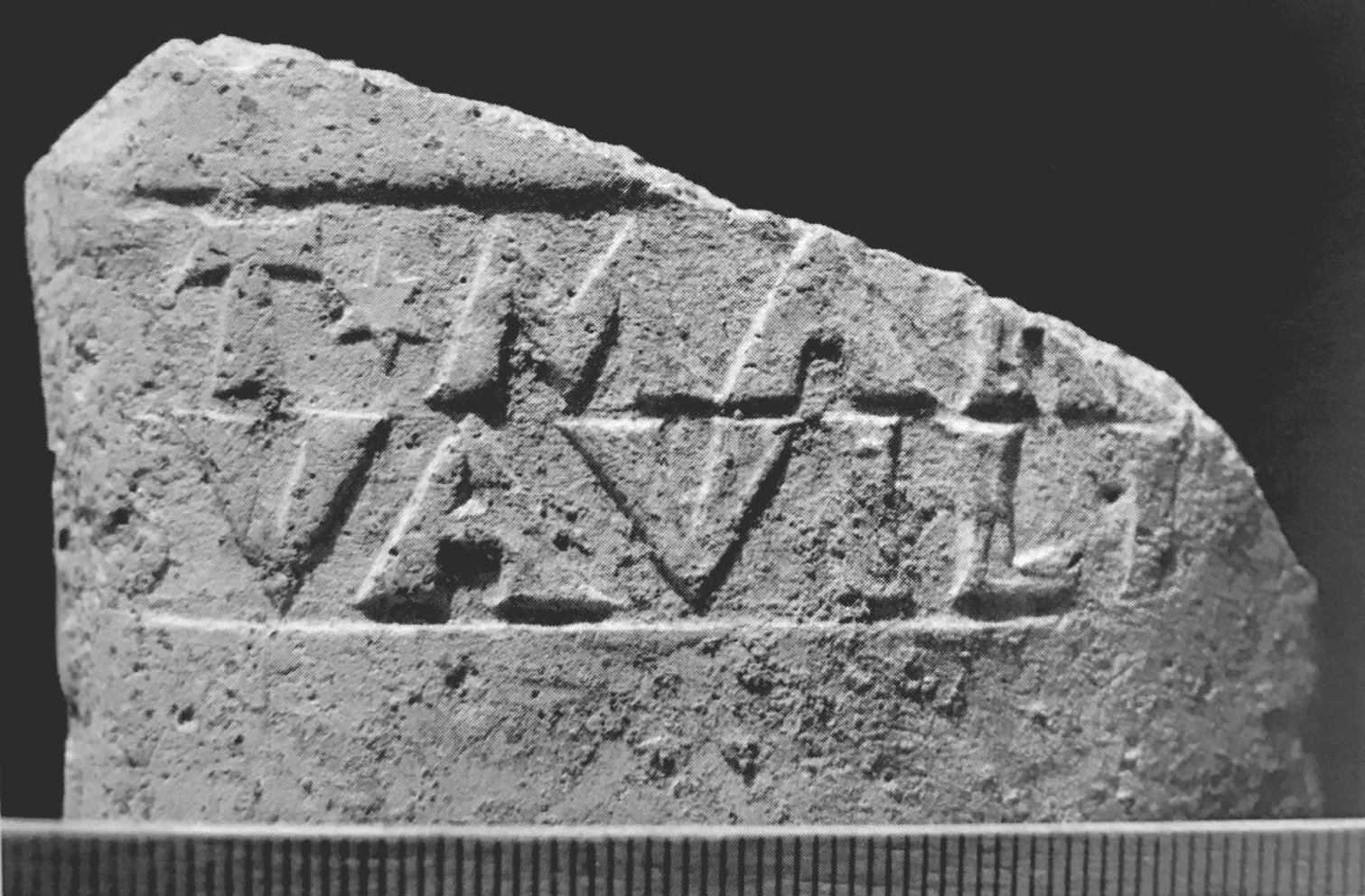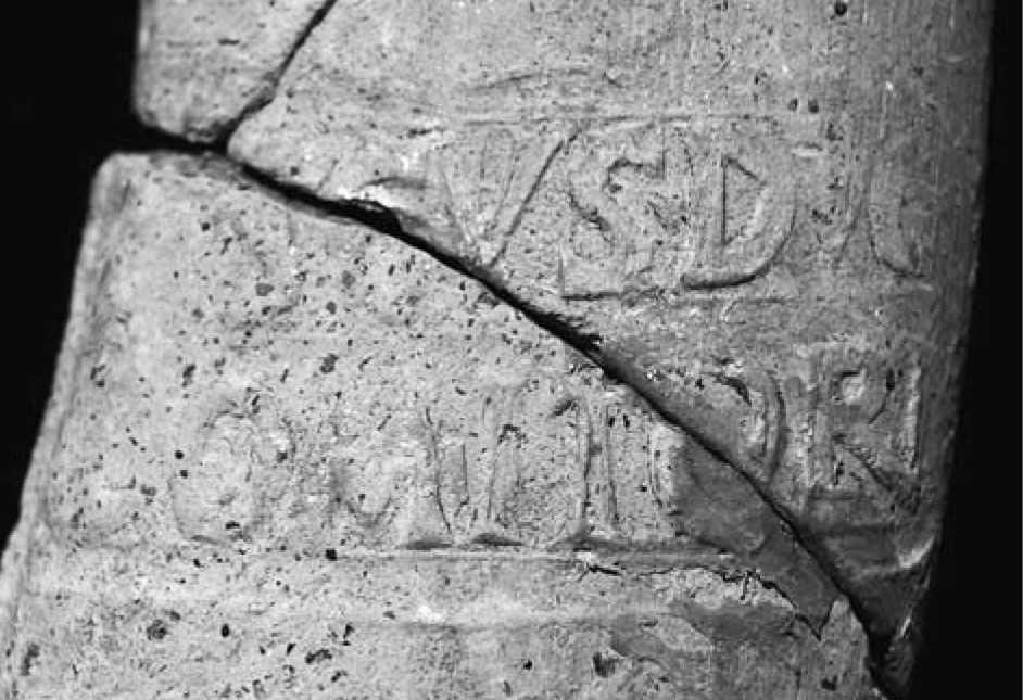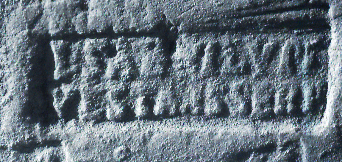 Paleografia. Grandi lettere rilevate e distanziate nella parte superiore della lastra.