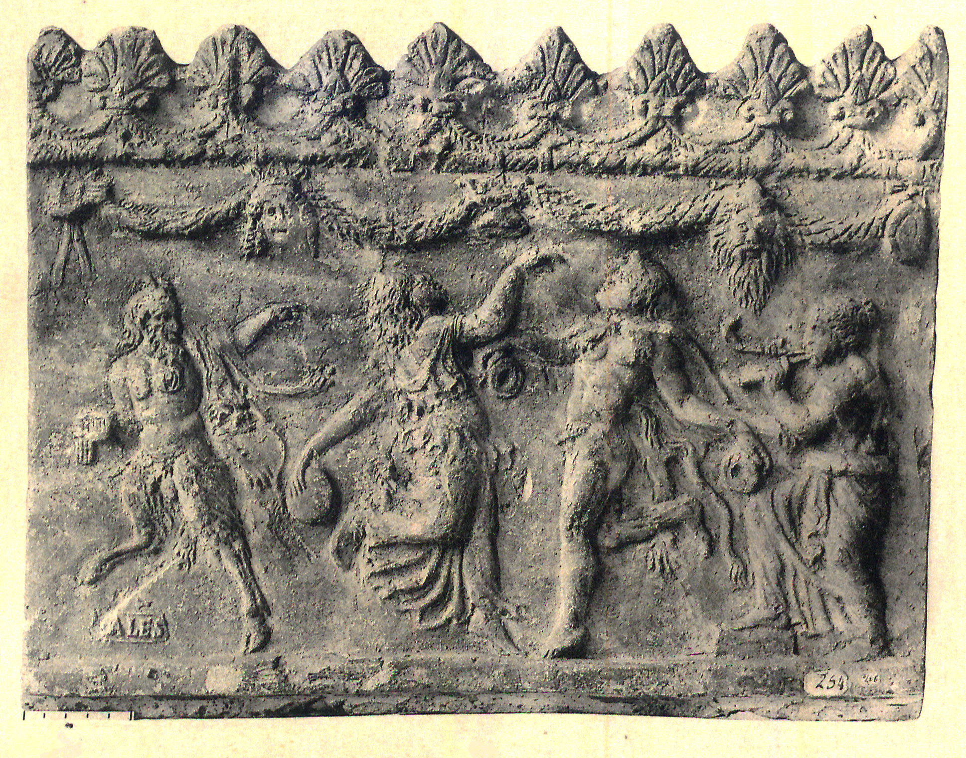 Commenti. Pagliardi: Sono noti 10 esemplari di lastre con bollo VALES, per lo più con scene bacchiche (von Rohden – Winnefeld 1911) provenienti dalla Villa di Livia a Prima Porta, da Tuscolo e da Ostia in sepolcri della prima età imperiale (Borbein 1968; Rizzo 1976-77; Rauch 1999, 120-122).