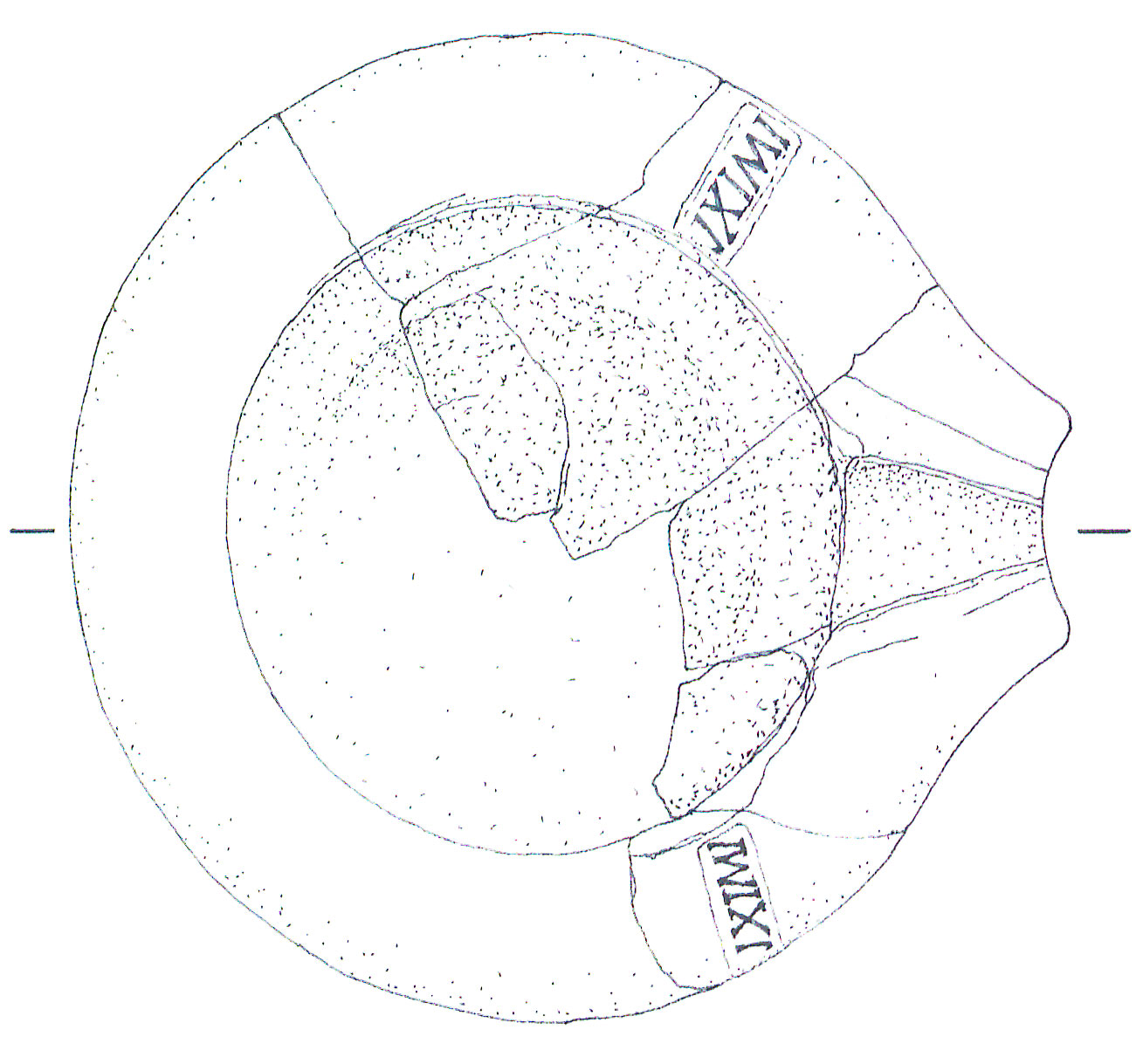 Novum CIL XV 2451/ S. 509.1 var.? Fig. Pallecchi 2002, punzone 22.5 (ric. grafica).