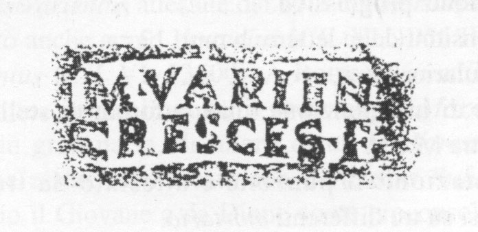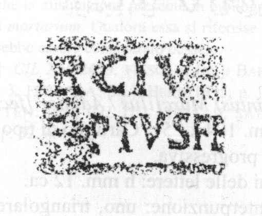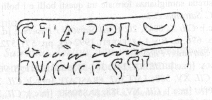 Edizioni. R. Lanciani, BCom 1892, 291 (m., Casal del Marmo, Roma). Steinby 1978-79, 77 N. 163. Pallecchi 2002, 171 punzone 18.92 N. 217.