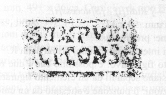 Commenti. Variante di CIL XV 2451, Steinby 1987, 47 N. 109 (Bloch considera identici i due bolli); cfr. anche 2427. Per l'es. pubblicato da M. Della Corte citato da Bloch v. Novum CIL XV 2451/ S. 509.1 var.?