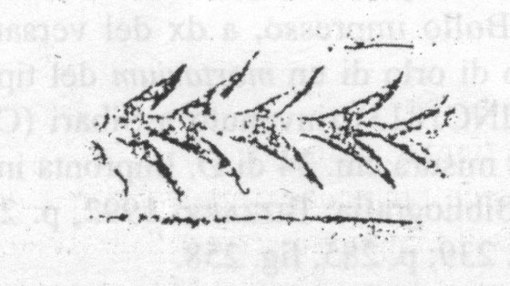 Ramo di edera. Simile al punzone 22.6, cfr. Pallecchi Nn. 236b e 238a/b, ma l'inclinazione delle foglie e la curvatura del ramo sono diverse (osservazione di Pallecchi, 2023).