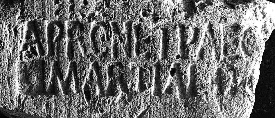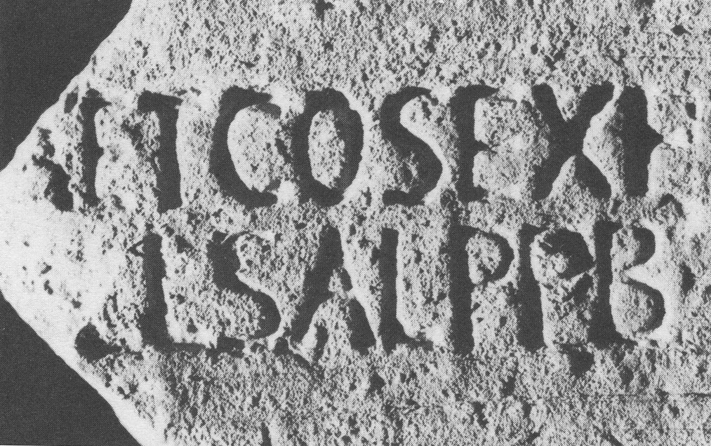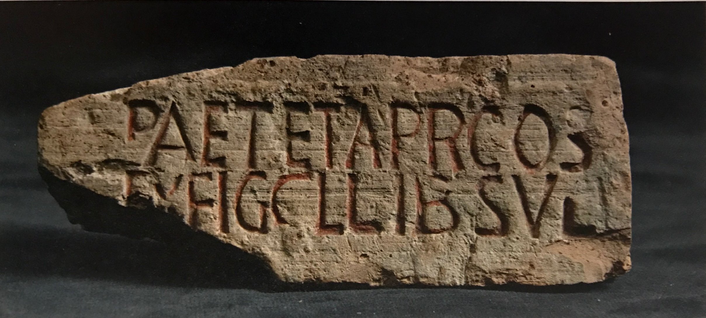 Ex pr(aedis) Aureli Caes(aris) et Faustin(ae) Auc(ustae) opus dol(iare) ex ficli(nis) Ponti(culanis) L. F( ) P( ).