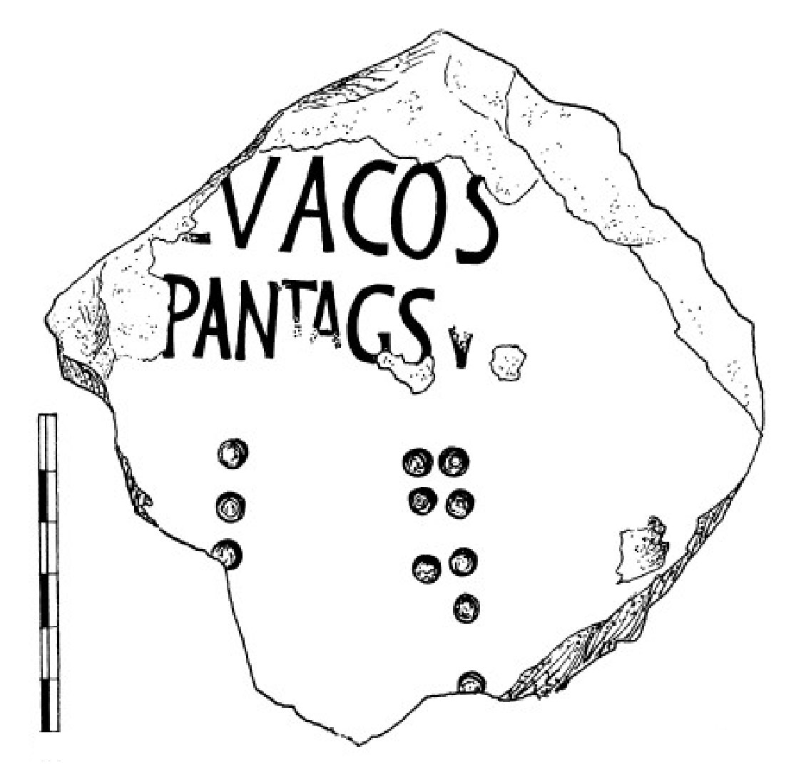 Sig. 9.2 ca., orb. ?. Lett. 0.8, 0.8, 0.8. Lin. 1, 2, 2, 1.