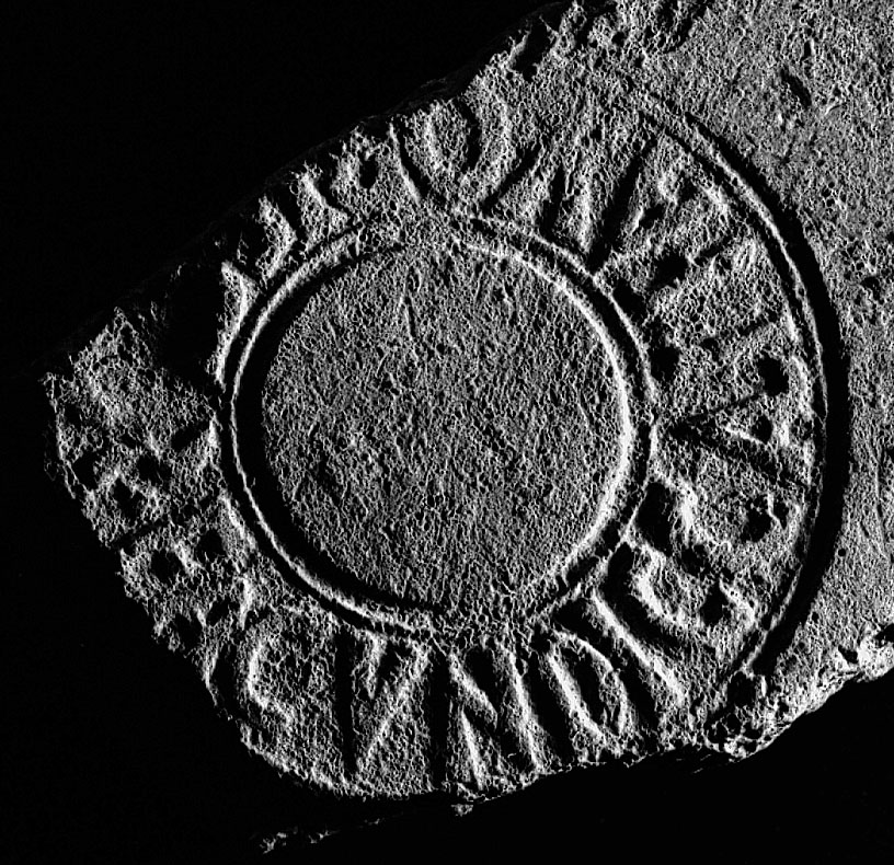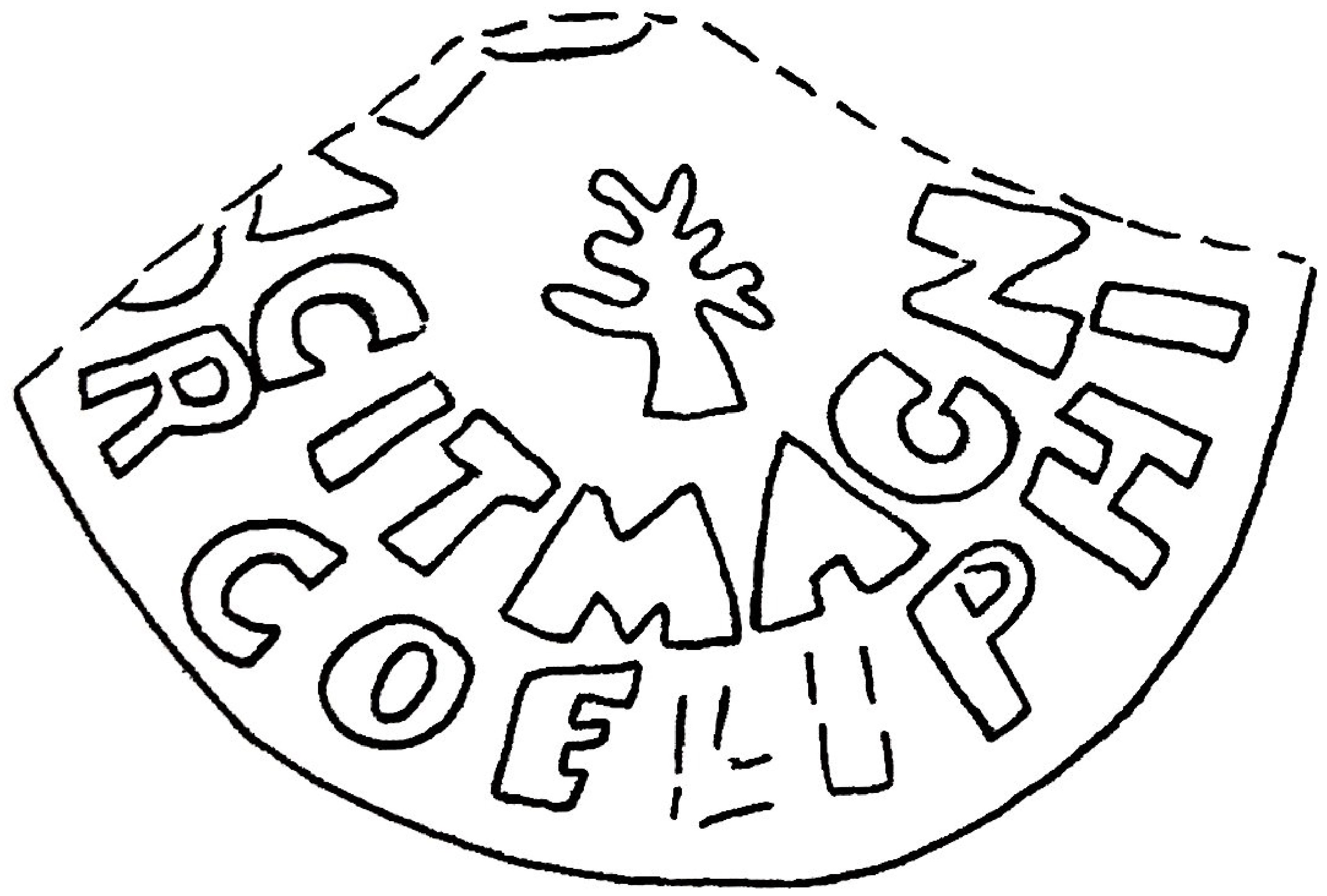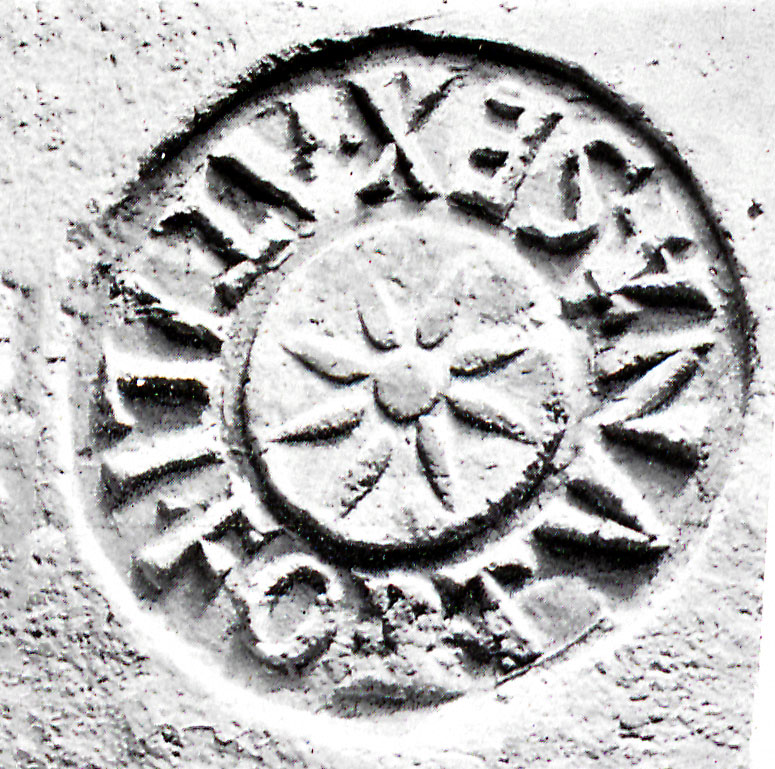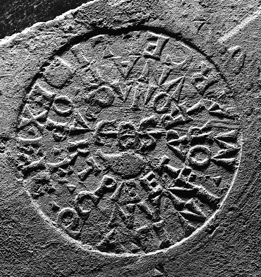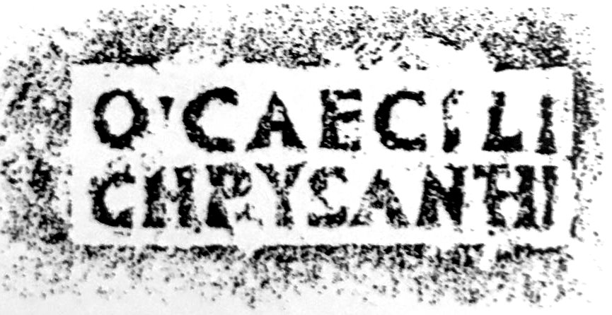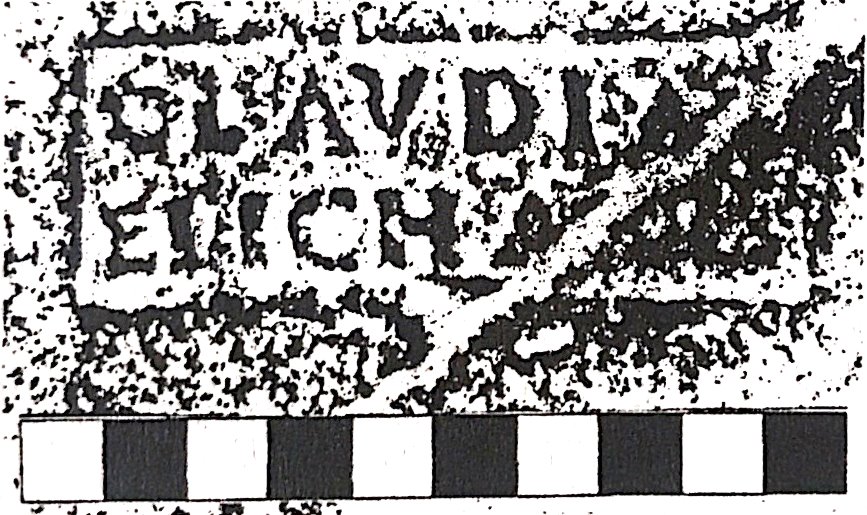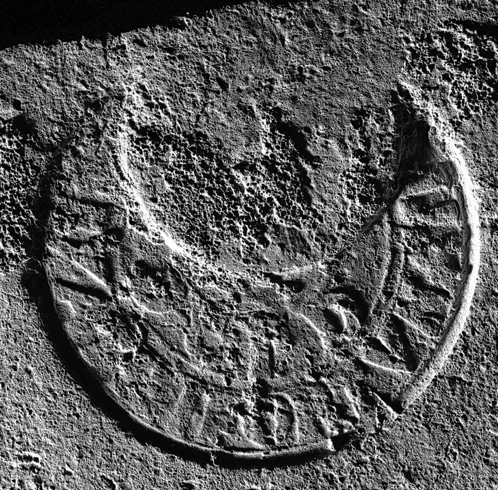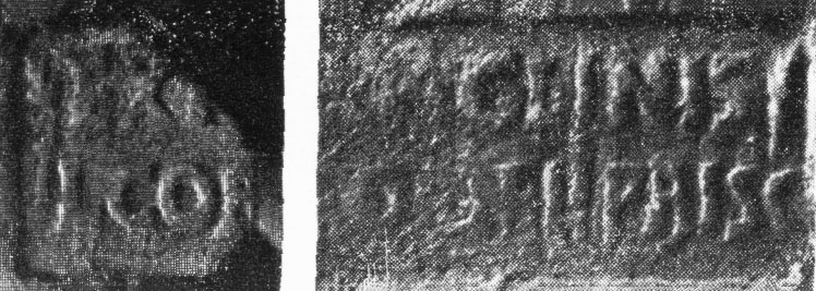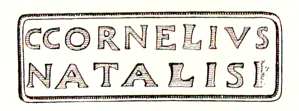 Paleografia. Litteris solito maioribus Dressel. Nell'immagine di Dressel il lato sinistro del bollo è tagliato a dentelli, quello destro è arrotondato.