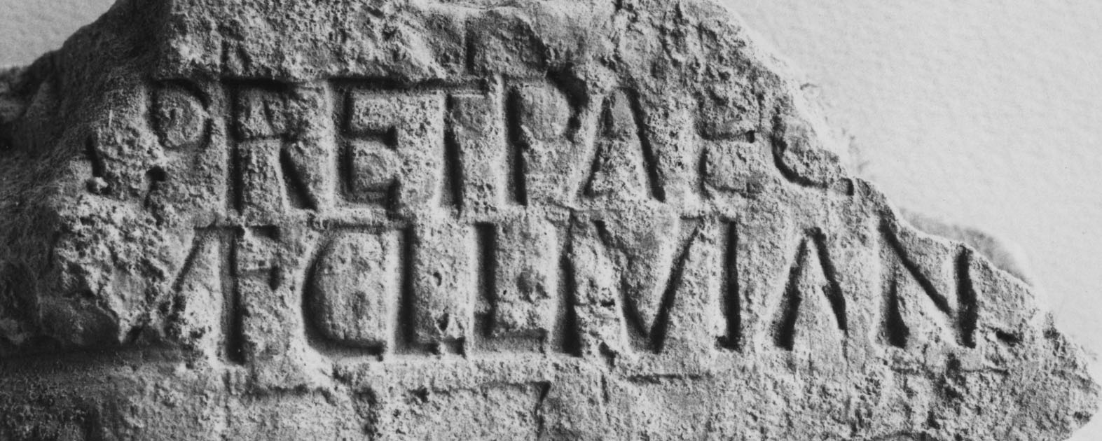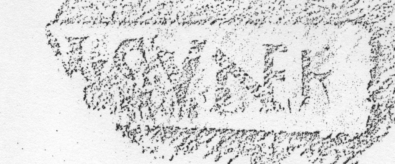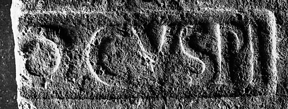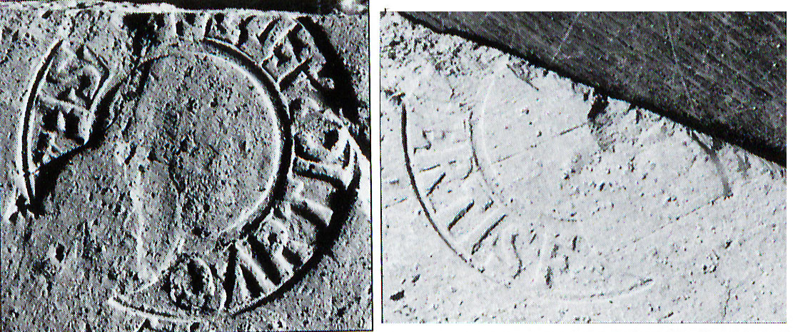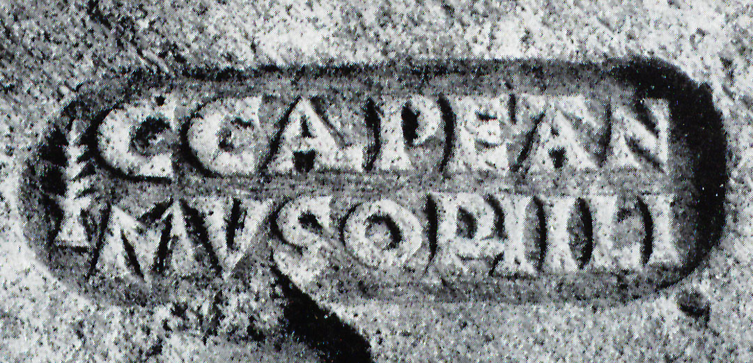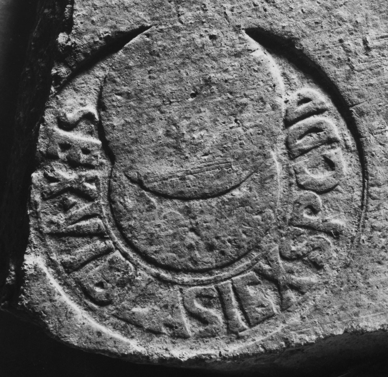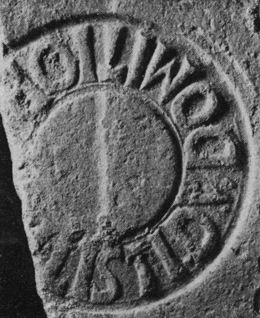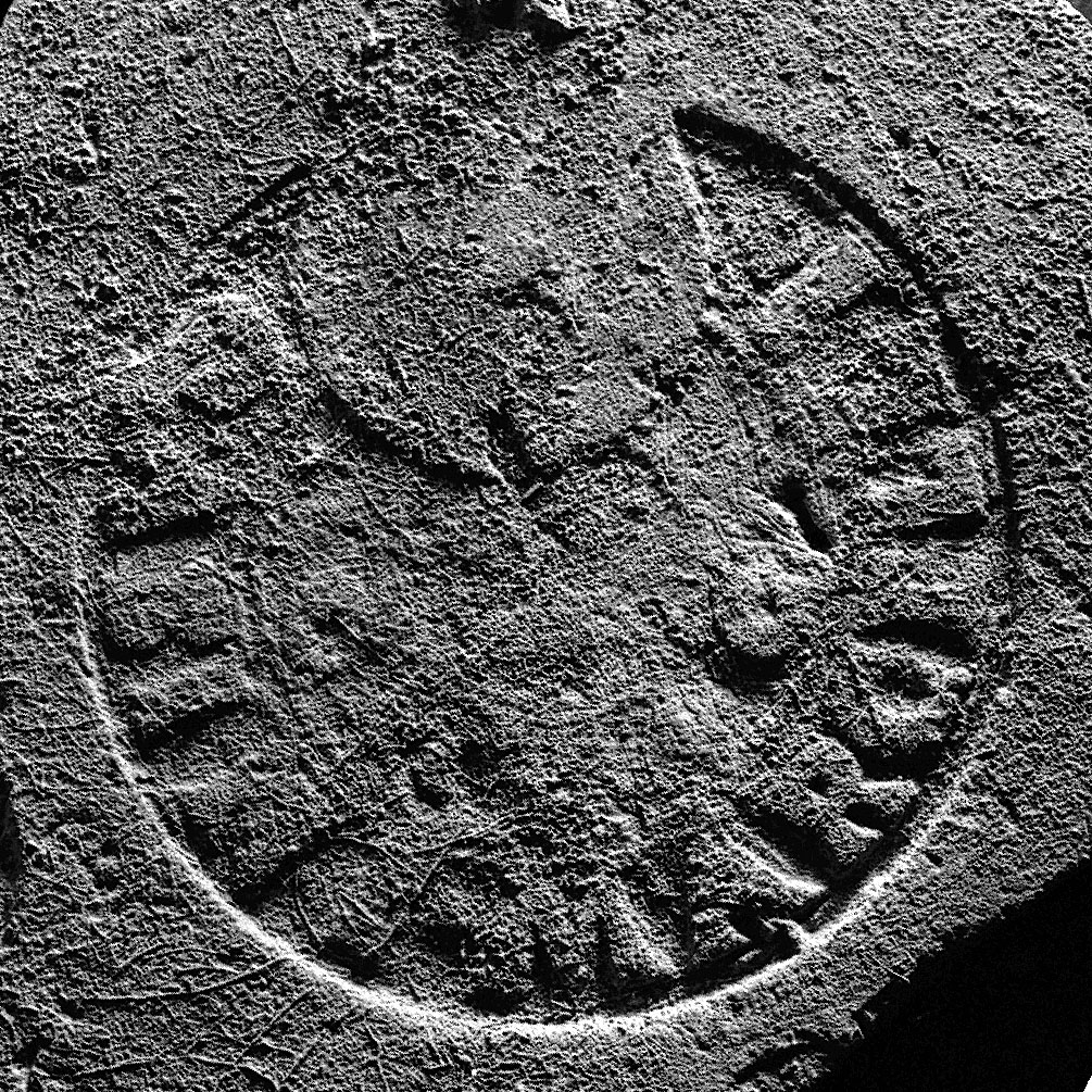 Paleografia. Litteris solito maioribus Dressel. Nell'immagine di Dressel il lato sinistro del bollo è tagliato a dentelli, quello destro è arrotondato.