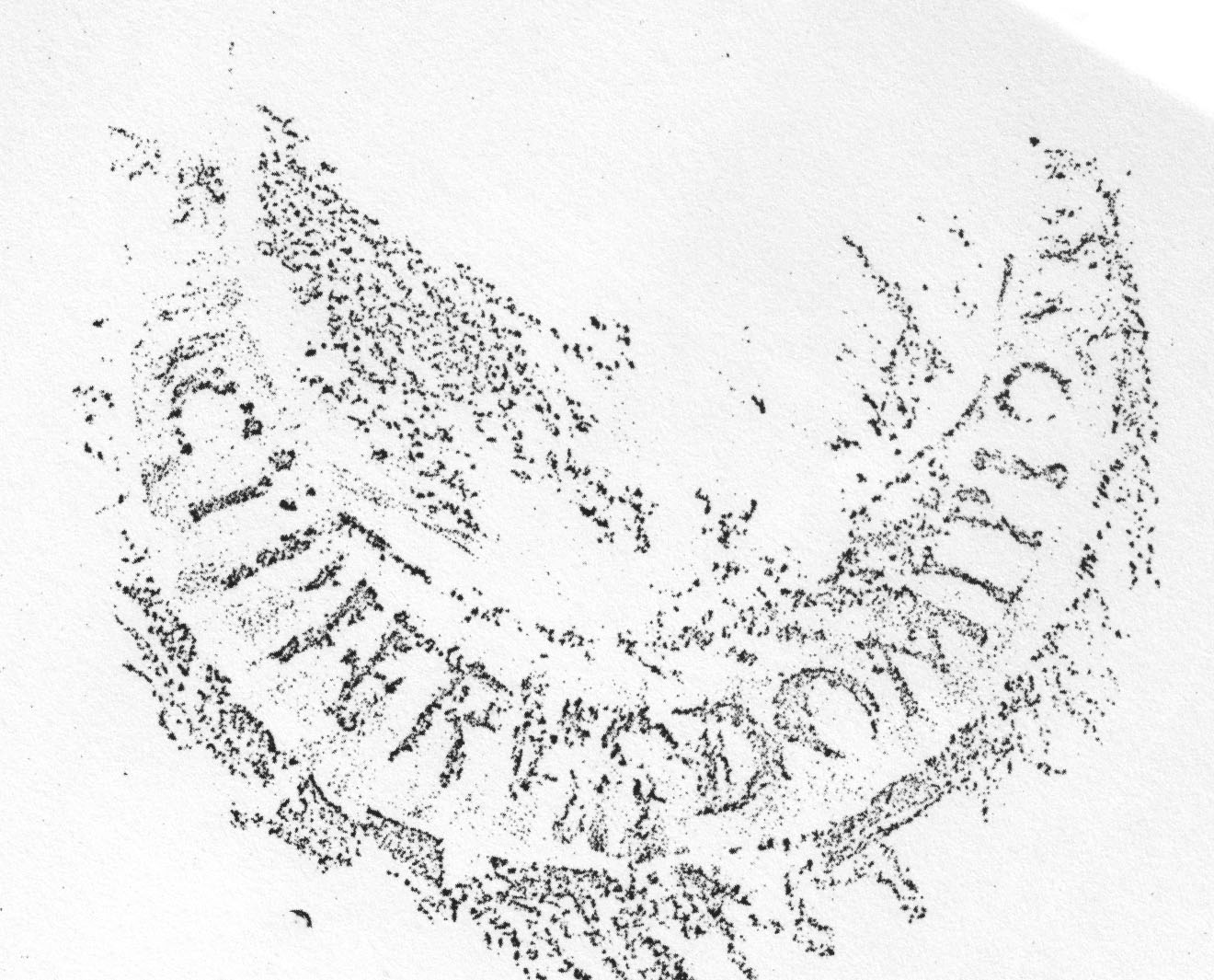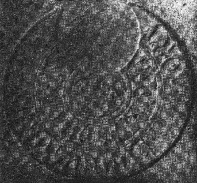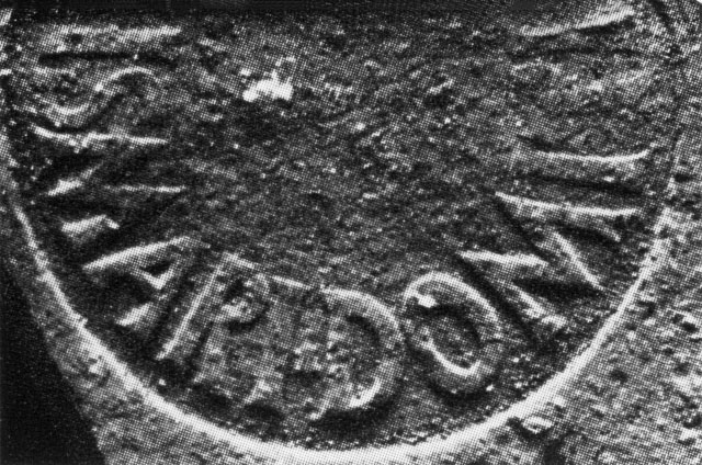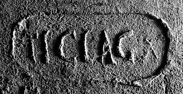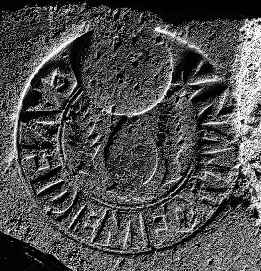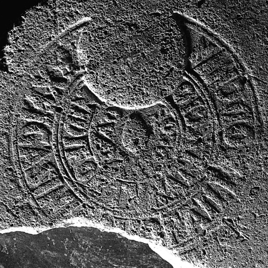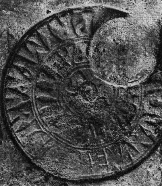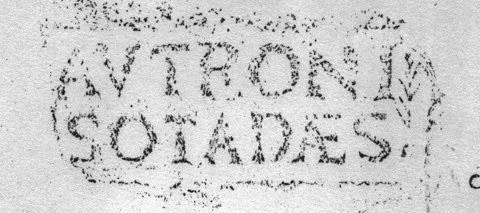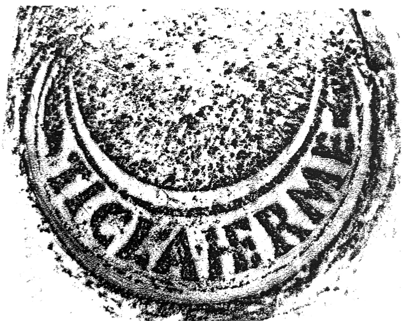Paleografia. Litteris solito maioribus Dressel. Nell'immagine di Dressel il lato sinistro del bollo è tagliato a dentelli, quello destro è arrotondato.