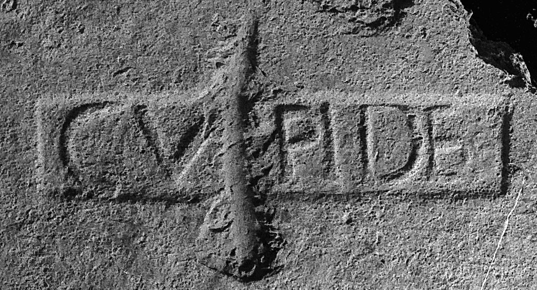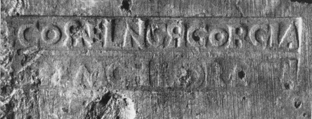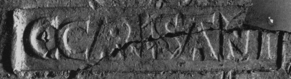 Paleografia. Gasperoni non menziona gli elementi decorativi. Dalla fotografia sembrerebbe che ai due lati dei rami di palma ci siano sagittae invece di folia hederae; in r. 2 il secondo segno d'interpunzione è decisamente una sagitta.